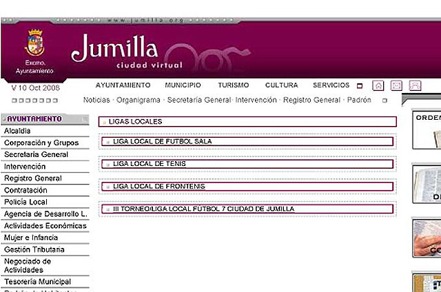En esta web, en la pestaña de Juventud y Deportes (situada en el lateral de la pantalla principal), se puede encontrar la información sobre las ligas locales de fútbol sala aficionados y veteranos, relativa a encuentros, resultados y clasificaciones, así como todos los eventos deportivos del fin de semana que se desarrollen en instalaciones municipales.