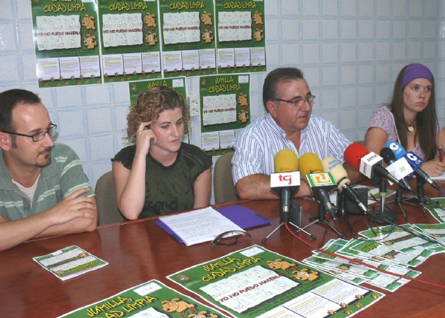 Bajo el slogan ‘Jumilla, ciudad limpia. Yo no puedo hacerlo, tú sí’ ayer se presentó la campaña para la concienciación sobre la recogida de excrementos de los animales en la vía pública. La campaña está organizada por el Ayuntamiento de Jumilla y la Asociación para la Protección y Defensa de Animales y Plantas 4 Patas Jumilla. En la presentación estuvieron presentes el concejal de Seguridad Ciudadana Primitivo González, la presidenta de la asociación Irene Santos Morales, la vocal de actividades Elena Salamero Saorín y el diseñador del cartel y díptico de la campaña Eduardo Gea.