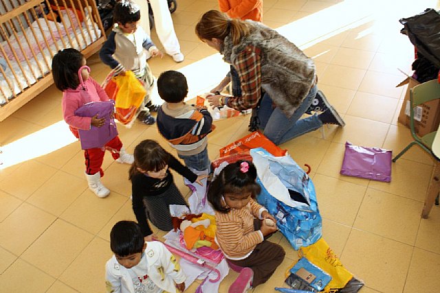 El pasado miércoles se entrego todo el material obtenido en esta campaña. Miembros de la empresa Radio Televisión Jumilla y hermanos de la cofradía de los “Amarillos”, visitaron a los niños de la guardería de Caritas. Amistad, Juegos, solidaridad, amor… son palabras que se mezclaron esa tarde en las dependencias de Caritas. La Campaña en números: Más de 500 unidades de ropa, abrigos, pantalones, camisas…, comida no perecedera, más de 20 cajas de zapatos (nuevos), 50 mochilas escolar (nuevas), 50 estuches (Nuevos), 50 chubasqueros, 50 paraguas para niños (nuevos) y más de 50 juegos para guardería (nuevos).