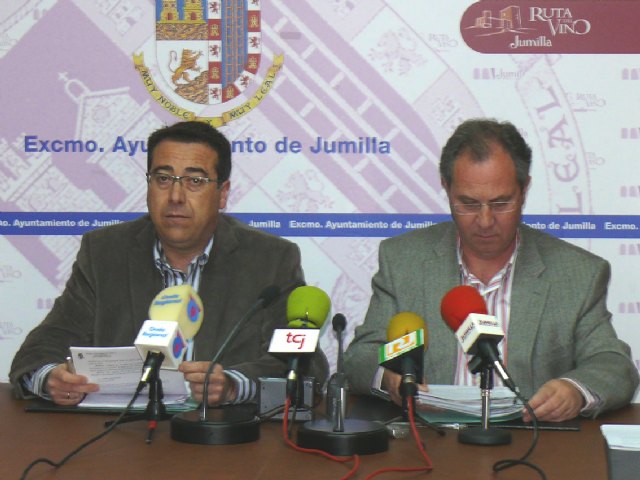 El alcalde de Jumilla Francisco Abellán y el portavoz del equipo de gobierno Jesús Sánchez han comparecido en rueda de prensa para dar a conocer los acuerdos adoptados en la Mesa de Contratación y la Junta Local de Gobierno de esta semana.