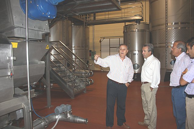 El titular de Agricultura y Agua, acompañado del director general de Industrias y Asociacionismo Agrario, Ginés Vivancos, visitó en Jumilla las nuevas instalaciones de las Bodegas Bleda, que recientemente han cambiado de ubicación y han sido ampliadas, con una aportación de la Consejería de cerca de 400.000 euros, que se enmarca dentro de las ayudas a la Industria Agroalimentaria cofinanciadas por el Fondo Europeo Agrícola de Desarrollo Rural FEADER y el Ministerio de Medio Ambiente y Medio Rural y Marino.