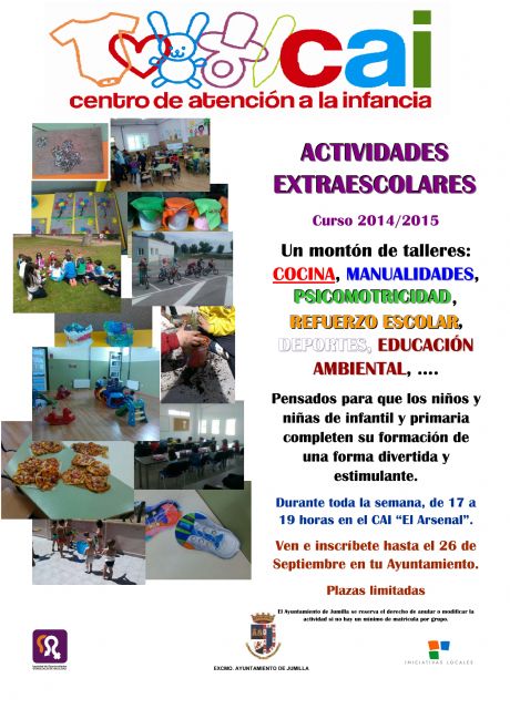 El Centro de Atención a la Infancia "El Arsenal" de Jumilla, lanza la oferta de actividades extraescolares para el curso 2014/2015 dirigido a niños y niñas de entre 3 y 8 años.