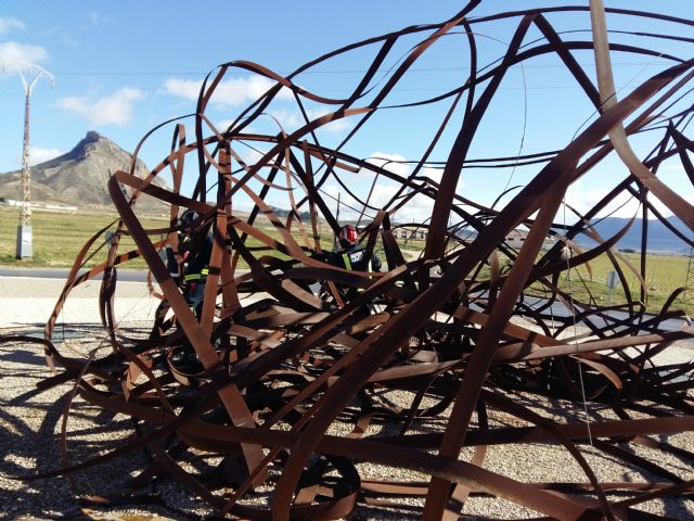 Los fuertes vientos que sufrió el término municipal de Jumilla durante el pasado domingo han dejado diferentes daños materiales en la zona. En la rotonda conocida popularmente como del Salicornio, situada en el Camino de los Franceses, se desplomó el monumento debido a que se soltó un cable que lo estabiliza. Efectivos del Parque de Bomberos aseguraron la estructura para evitar que se despendiera en su totalidad.