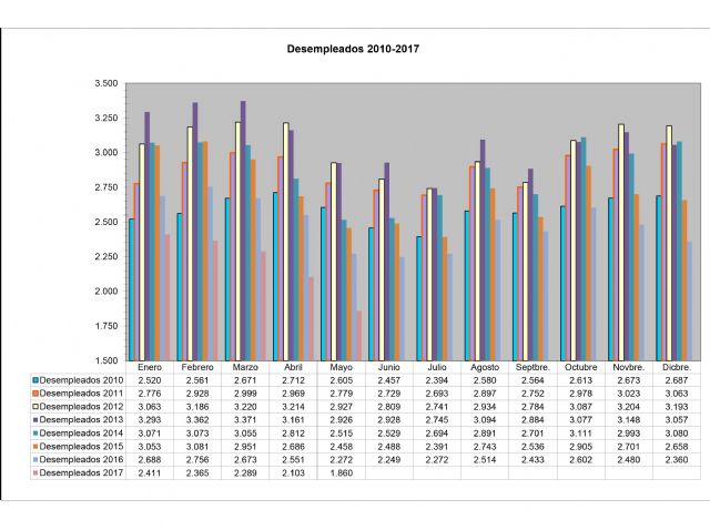 El mes de mayo se ha cerrado en Jumilla con 243 desempleados menos, lo que deja la cifra total en 1.860 personas en situación de búsqueda de empleo. En los últimos ocho años, el paro en el municipio no había bajado de los dos millares de personas. Se completan cuatro meses consecutivos de descensos con una reducción de 551 personas.