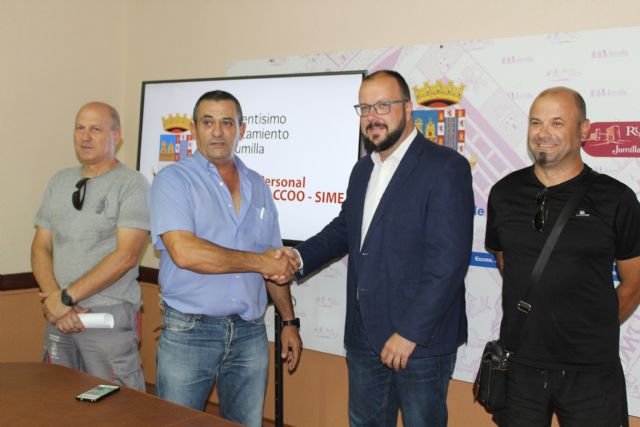 Las organizaciones sindicales que integran la Junta de Personal en el Ayuntamiento de Jumilla, CSIF, UGT, CCOO y SIME, han acordado en Mesa General de Negociación, considerar como jornada presencial 35 horas semanales y 2,5 horas no presenciales, "para favorecer el desarrollo profesional y la conciliación personal y laboral de los empleados públicos". Esta mañana han informado de este acuerdo en sendas ruedas de prensa el concejal de Personal, Alfonso Pulido, y el presidente de la Junta de Personal, Miguel Toledo, en presencia de representantes de los sindicatos.