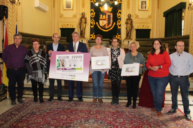 Esta mañana se ha presentado en el salón de plenos del Ayuntamiento de Jumilla el cupón de la ONCE del próximo 27 de abril, que estará dedicado al 75 aniversario de la imagen de la Virgen de la Soledad de Jumilla.
