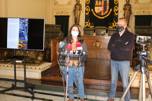La concejala de Cultura, Pilar Martínez, acompañada del jefe del área, Andrés Martínez, ha presentado esta mañana el programa de conciertos 'Sonidos de Semana Santa' que desarrollará durante los próximos días en el municipio.