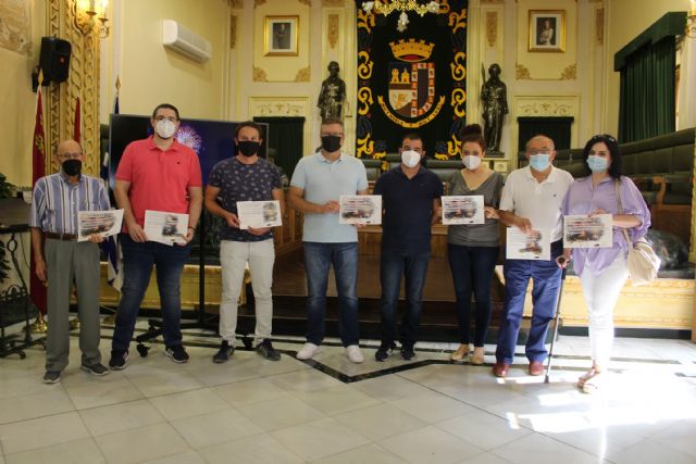 El concejal de Festejos, José Antonio Jiménez, y el gerente de Pirotecnia Murciana, Juan José Palazón, han hecho entrega hoy en el salón de plenos del Ayuntamiento de los premios del concurso de fotografía del Castillo de Fuegos Artificiales organizado con motivo de las Noches de Feria 2021.