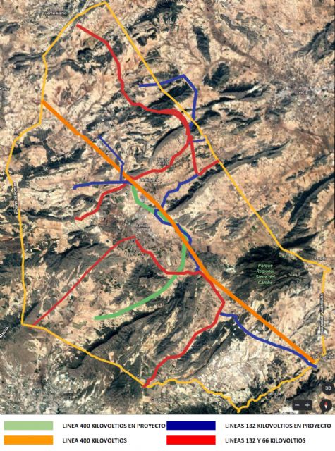 Con las líneas eléctricas actuales y lo que hay proyectado que se conoce públicamente (una larga lista como la conexión con la subestación de la Jimena, plantas solares del Término Arriba, La Campana, la mencionada de la Cañada del Judío y la conexión con la Algueña) suman la escalofriante cifra de 220 kilómetros de líneas de muy alta tensión en nuestro término municipal (de 66, 132 y 400 kilovoltios). Se necesitarían 500.000 personas para hacer una cadena humana equiparable a esa longitud.