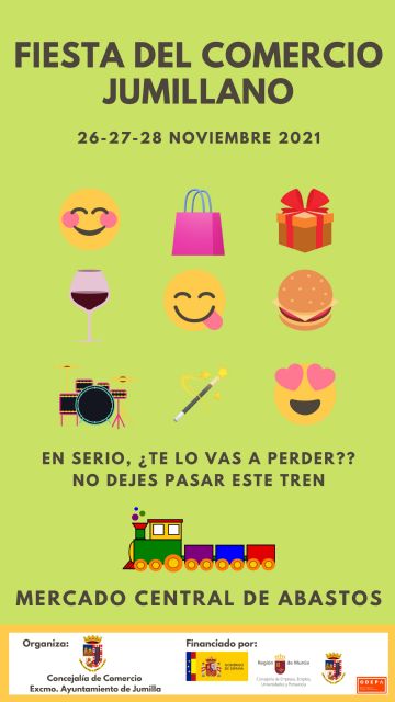 La Fiesta del Comercio Jumillano dará comienzo en la tarde del viernes a las 17.00 horas. A las 19.00 horas se abrirán dos barras para consumo de visitantes y para las 21.00 horas se ha programado un concierto de grupos de rap.