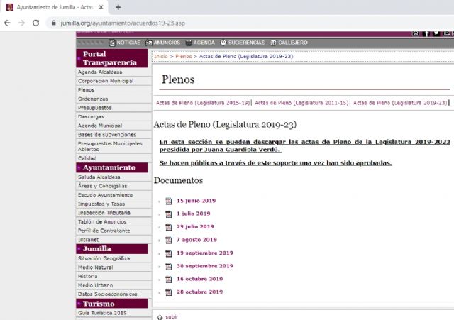 3-Las convocatorias de pleno desaparecen al día siguiente de celebrarse, en el antiguo tablón de anuncios permanecían para consulta.