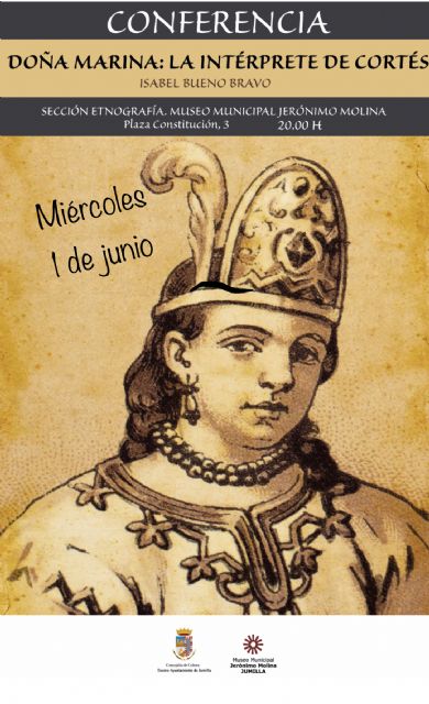 Este miércoles 1 de junio, a las 20 horas, tendrá lugar en la sección de Ciencias Naturales y Etnografía del Museo Municipal Jerónimo Molina una conferencia titulada 'Doña Marina: la intérprete de Cortés'.