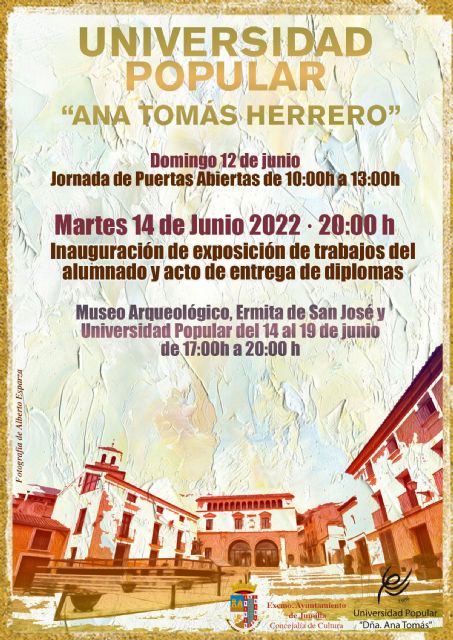 Igualmente, se inaugurará la exposición de trabajos realizados por el alumnado y que estarán expuestos hasta el día 19 en el Museo Arqueológico, en la Ermita de San José y en la propia Universidad Popular.