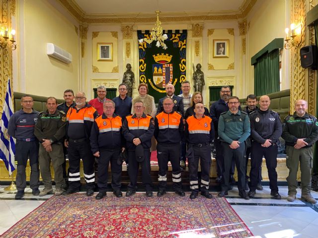 La alcaldesa de Jumilla, Juana Guardiola, acompañada por el concejal de Emergencias, Eugenio Aguado, el comisario jefe de Policía Local, Antonio Luis Mula, y el coordinador de Protección Civil de Jumilla, Salvador García, ha agradecido hoy su esfuerzo y dedicación a los voluntarios de Protección Civil en su Día Internacional, que desde 1972 se conmemora el 1 de marzo.