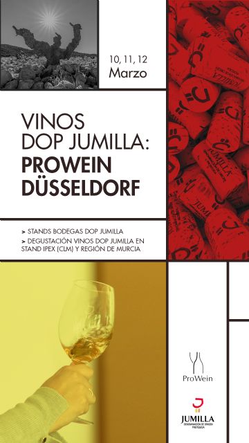 Este domingo dará comienzo la Feria de Vino Internacional Prowein Duesseldorf, en Alemania. Una de las ferias más importantes del sector del vino a nivel mundial en la que las bodegas de la DOP Jumilla vienen participando desde hace más de 15 años. En esta feria se habilita un agrupado de bodegas por parte del Consejo Regulador de la DOP Jumilla en conjunto con ICEX España Exportación e Inversiones en la zona delimitada para Vinos de España dentro del Pabellón 11. En este agrupado, participan 10 bodegas: Bodegas Silvano García, Finca Monastasia, Bodegas Olivares, Bodega Cerrón, Bodegas Delampa, Bodegas Pío del Ramo, Casa de la Ermita, Parajes del Valle, Bodegas Ontalba y Bodegas Xenysel.