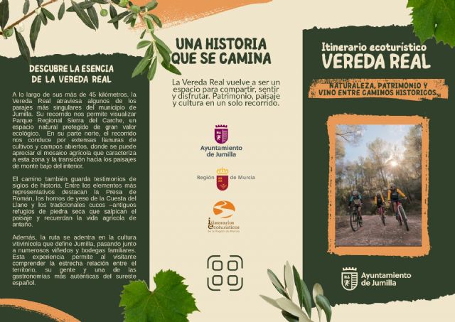 El Ayuntamiento de Jumilla ha finalizado las obras de mejora y acondicionamiento del itinerario ecoturístico de la Vereda Real, un ambicioso proyecto que forma parte del Plan de Sostenibilidad Turística en Destino, financiado con fondos europeos Next Generation y donde la inversión total ha ascendido a 387.038,95 euros.