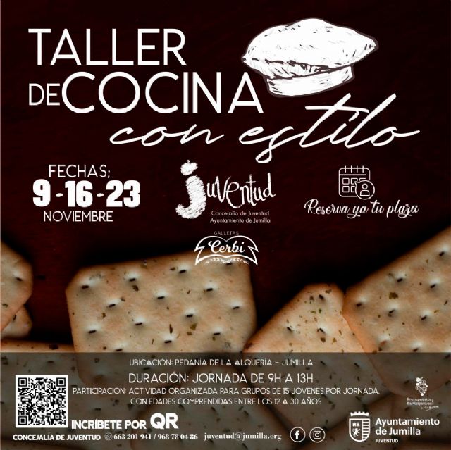 Junto a estas actividades de carácter lúdico, el mes de noviembre también incluye elTaller de Cocina con Estilo, programado para los días 9, 16 y 23 en la pedanía de La Alquería. La iniciativa cuenta con la colaboración de la empresa local Galletas Cerbi y está dirigida a jóvenes de entre 12 y 30 años, con grupos reducidos por jornada, para la que será necesario inscribirse. Esta propuesta forma parte de los proyectos seleccionados en los presupuestos participativos.