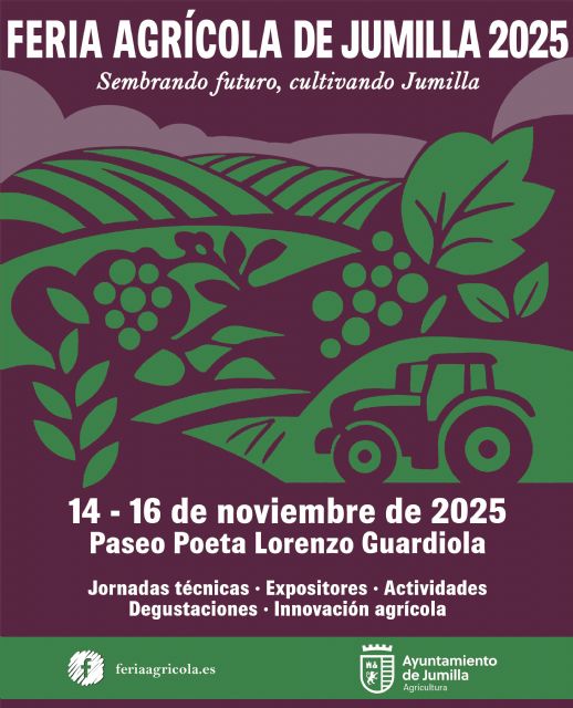 El evento, organizado por la Concejalía de Agricultura del Ayuntamiento de Jumilla, incluye un programa que arranca el viernes 14 por la tarde con una jornada técnica en el Centro Sociocultural Roque Baños, donde los principales expositores presentarán sus últimas novedades al sector.
