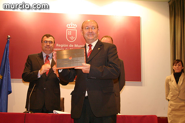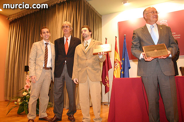 El jurado, compuesto por representantes del Colegio Oficial de Arquitectos, del Colegio Oficial de Ingenieros, de la Confederación Regional de Organizaciones Empresariales, de las universidades y de la Federación de Municipios de la Región de Murcia, asistió hoy a la entrega de los galardones de esta primera edición, en la que también estuvieron presentes los responsables de la Consejería.